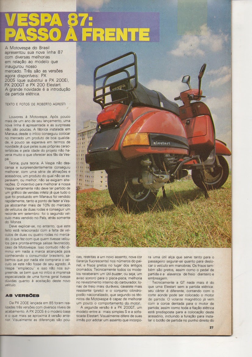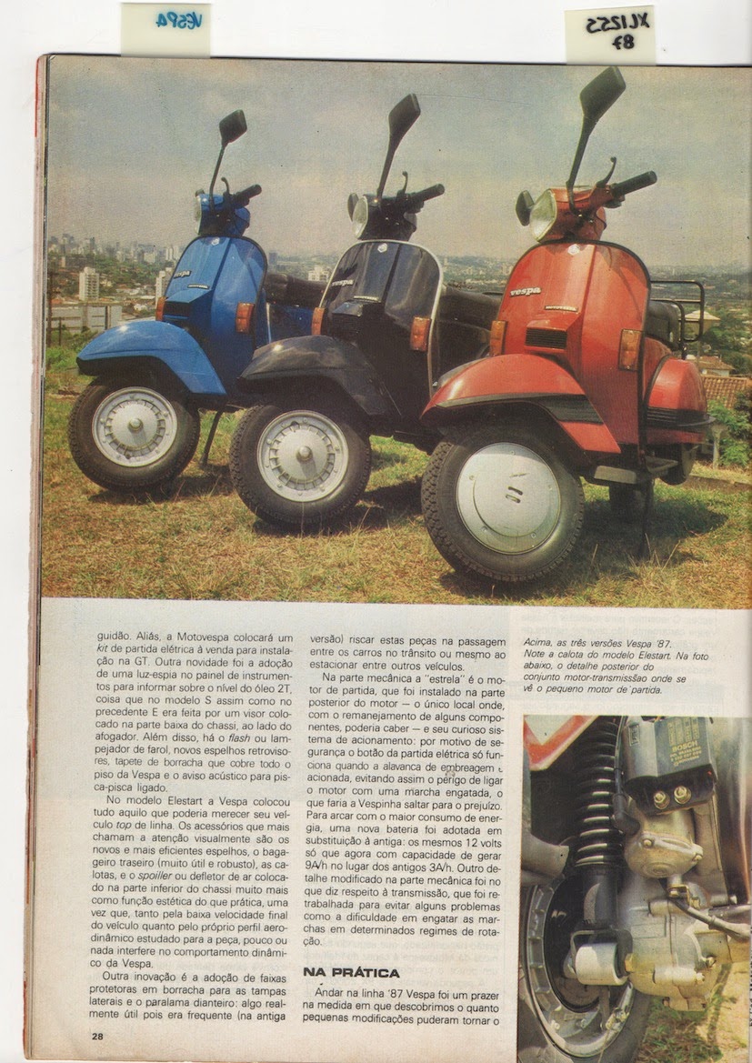 A vespa era a coqueluche do momento, sabe aquela historia de o produto certo na hora certa? pois é, foi um sucesso de vendas instantâneo, e em 1987, pouco mais de 1 ano após seu lançamento no Brasil, recebia novas versões, incluindo uma delas com partida elétrica – artigo de luxo naqueles tempos!