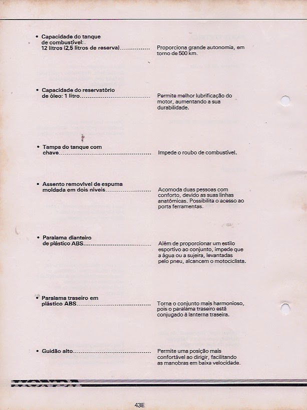 Dando continuidade a série de documentos confidenciais da Honda na metade dos anos 80, temos aqui o descritivo técnico e argumentação de vendas da Honda CG125