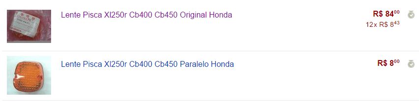 Por outro lado, existem vendedores honestos – veja acima, no primeiro anuncio, ORIGINAL HONDA e inclusive o selo pra comprovar. No segundo anuncio, de cara o vendedor diz ser PARALELO.