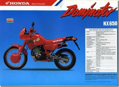 • Tive uma NX 650 Dominator na Argentina em 1993! Moto excelente, fina e divertida. Na Argentina havia muitas e até nos dias de hoje vc vê algumas rodando por aí.
