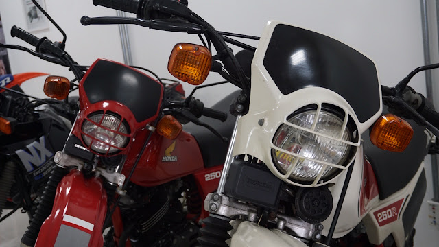 No Brasil tivemos NX150, 200, 350 e a rara NX650 Dominator, nem todas estavam disponíveis na mostra, mas o exemplar de NX150 fez valer a pena, e uma NX350 Sahara “Capitão América” também representava bem essa época.